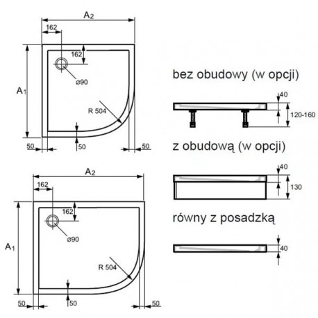 Akrylová vanička, rozmery do 90x90 cm | 55 zlotý | 75 zlotý | 120 zlotý | |