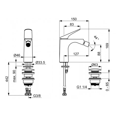 Oras > Armatúra/batérie > Bidetové batérie > HansaGenesis > Bidetová batéria HansaGenesis, na postavení, páková - čierna matnéný