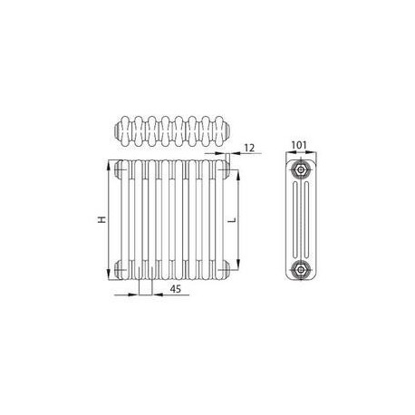 Typ radiátora: z potrójnym rzędem rurek (trzykolumnowy).