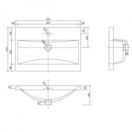 Defra > Sanitárna keramika > Nábytkové umývadlá > Meblowe > Umývadlo nábytkové Defra Go 60, obdĺžniková 61x41 cm, s otvorom na batérie, z prepadom - biela