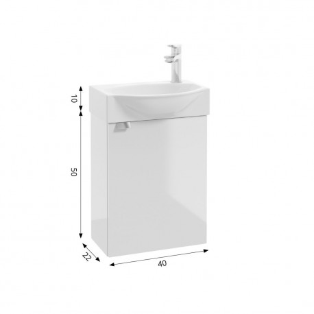 Skrinka podumývadlová Defra Faro D40 Závěsná s dverami, šírka 40 cm - lakier biely lesklá