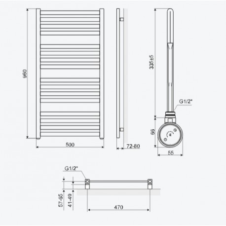 Excellent > radiátory > Kúpeľňové rebríkové > Horos > Kúpeľnový radiátor elektrický Excellent Horos 96 960x500 z elektrickým ohrievačom 400W - šedý metalik