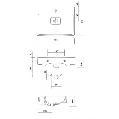 Cersanit > Sanitárna keramika > Nábytkové umývadlá > Virgo > Umývadlo nábytkové Cersanit Virgo 60, 60,5x46cm, z prepadom, s otvorom pre batériu - biela