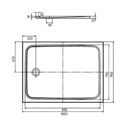 Kaldewei > Sprchové vaničky > Oceľové vaničky > Štvorcové / obdĺžnikové > Sprchová vanička pravouhlý Kaldewei Cayonoplan oceľový, plochý 90x100 cm, Mod.2257-1 - biely