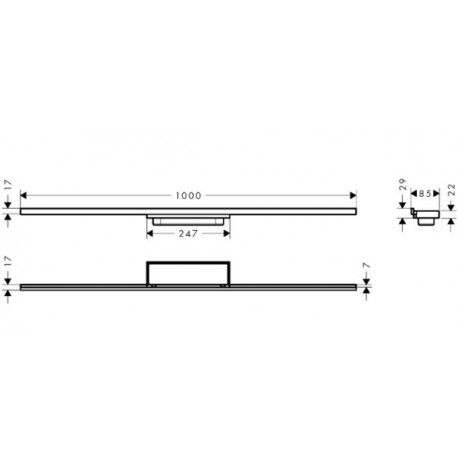 Vrchná sada odpływu liniowego Hansgrohe RainDrain Minimalistic 1000, montáž prístenný