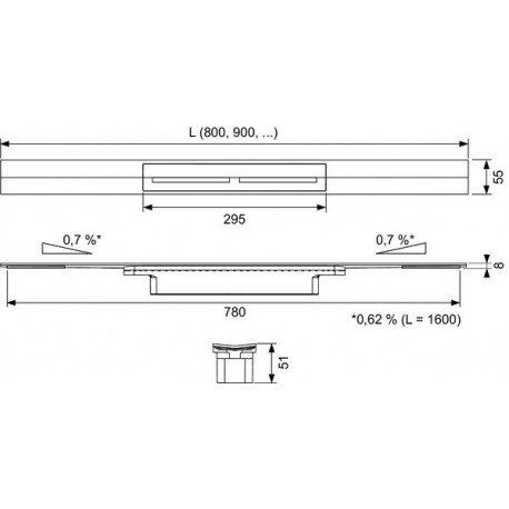 Profil sprchový TECEdrainprofile, oceľ lesklá, 800 mm