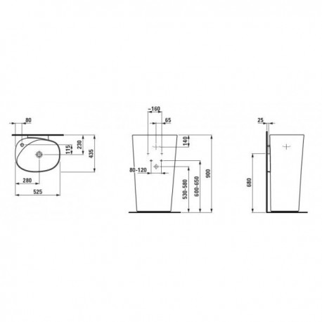 Laufen > Sanitárna keramika > Ostatné umývadlá > Palomba > Monolityczna umývadlo voľne stojaca Laufen Palomba prístenná z zintegrowanym postumentem z 1 otworem 525 x 435 x 900 mm - biela