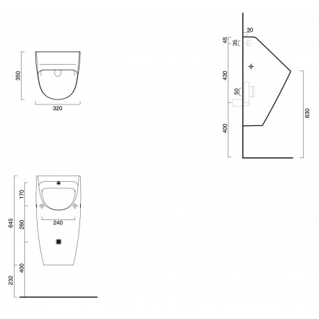 Catalano > Sanitárna keramika > Pisoáre > Sfera > Pisoár Catalano Sfera 64, závesný, bez otworów na pokrywę - čierna matnéný
