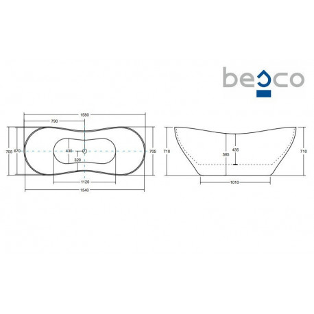 Besco > Vane > Voľno stojace vane > Viya > Vaňa voľne stojaca Besco Viya 160x70 cm, sifón klik-klak biely czyszczony od góry - biely lesklá