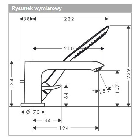 Hansgrohe > Armatúra/batérie > Vaňové batérie viacotvorové > Metris E > Vaňová Batéria Hansgrohe Metris 3-otvorová páková na okraj vane - chróm
