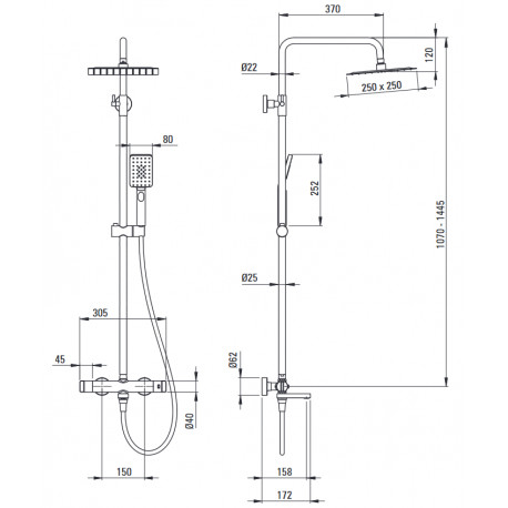 Deante > Armatúra/batérie > Sprchové systémy > Armatúra/batérie > Horná sprcha s batériou wannową termostatickou, Deante - nero (čierna matnéný)