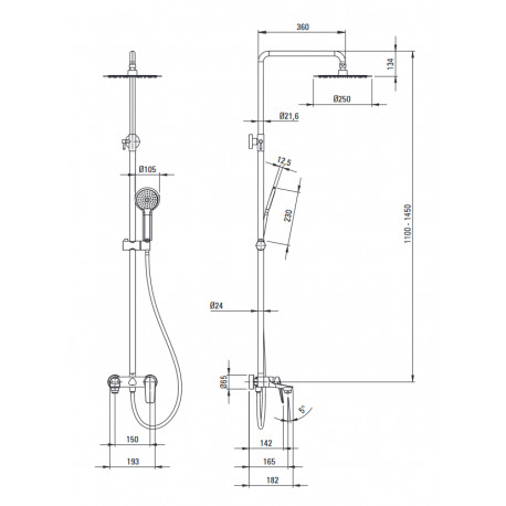 Deante > Armatúra/batérie > Sprchové systémy > Coriander > Horná sprcha s batériou wannową, Deante Coriander - nero (čierna matnéný)