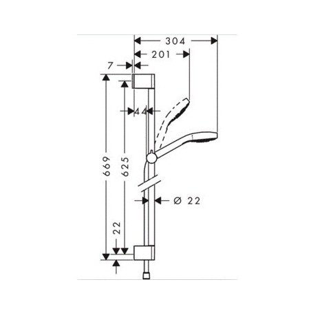 Hansgrohe > Armatúra/batérie > Zestawy natryskowe bez baterii > Sprchové systémy > Sprchový set Hansgrohe Croma Select S 1jet 65 cm, veľkosť sprchovej hlavici 11 cm, EcoSmart 9 l/min, biely/chróm