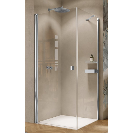 Huppe > Sprchové kúty > Stvorcové / obdĺžnikové kúty > Solva > Krídlové dvere Huppe Solva čiastočne v ráme 4-uholník 80x200 cm, upevnenie ľavé, montáž na sprchovacej vaničke - sklo číre Anti-Plaque, profil chróm/strieborná lesklá