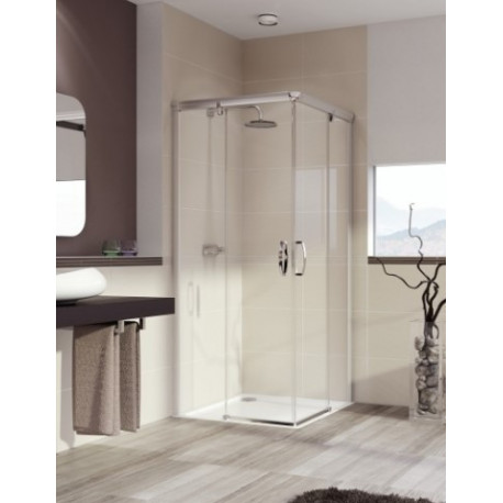 Huppe > Sprchové kúty > Stvorcové / obdĺžnikové kúty > Aura > Rohový vstup Huppe Aura Elegance 4-uholník, dverí posuvné dvojdielny 75x90x200 cm - sklo privatima S povrchom Anti-Plaque, saténové profily vysoký lesk