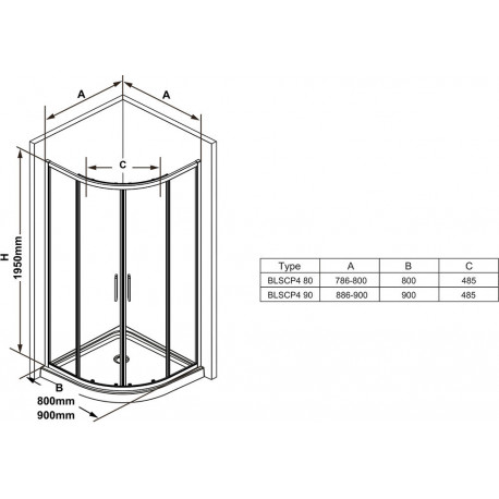 Ravak > Sprchové kúty > Stvorcové / obdĺžnikové kúty > Blix > Sprchový kút Ravak Blix Slim BLSCP4, štvrťkruhový, 90x90x195 cm, sklo číre z warstwą AntiCalc, profil lesklý chróm