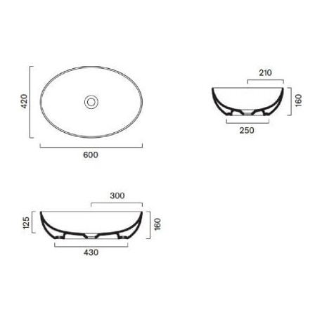 Catalano > Sanitárna keramika > Umývadlá na dosku > Sfera > Umývadlo na postavenie na dosku Catalano Sfera Oválna 60x42 cm, bez otvoru pre batériu, bez prepadu - biely lesklá