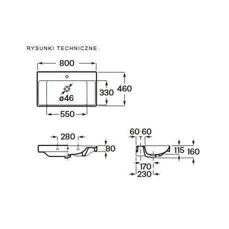 Roca > Sanitárna keramika > Umývadlá na dosku > Ona > Umývadlo nábytkové obdĺžniková Roca Ona Fineceramic, 80x46cm, s otvorom na batérie, z prepadom - biela