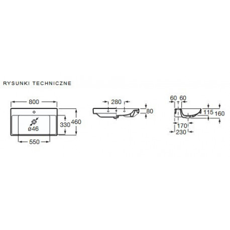Roca > Sanitárna keramika > Umývadlá na dosku > Ona > Umývadlo stenová obdĺžniková Roca Ona Fineceramic, 80x46cm, z prepadom - biela