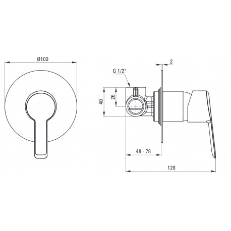 Deante > Armatúra/batérie > Umývadlové batérie nástenné > Arnika > Batéria sprchová bez prepínača sprchy podomietková, Deante Arnika - nero (čierna matnéný)