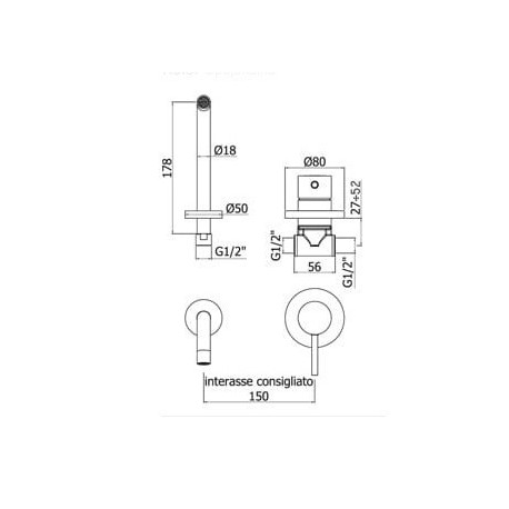 Paffoni > Armatúra/batérie > Umývadlové batérie nástenné > Light > Umyvadlová batéria podomietková Paffoni Light s výtokovým ramenom 18 cm - biely matnéný