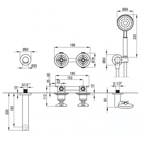 Deante > Armatúra/batérie > Vaňové batérie viacotvorové > Temisto > Vaňová Batéria podomietková Deante Temisto so sprchovým systemom - nero