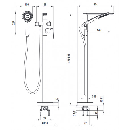 Deante > Armatúra/batérie > Vaňové batérie voľne stojace na podlahu > Arnika > Vaňová Batéria páková voľne stojaca so sprchovým systemom, Deante Arnika - nero (čierna matnéný)