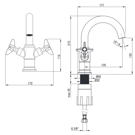 Ventil rohový Schell Comfort regulacyjny 1/2x3/8' (do umývadlovej batérie) - chróm Séria: Rohové ventily