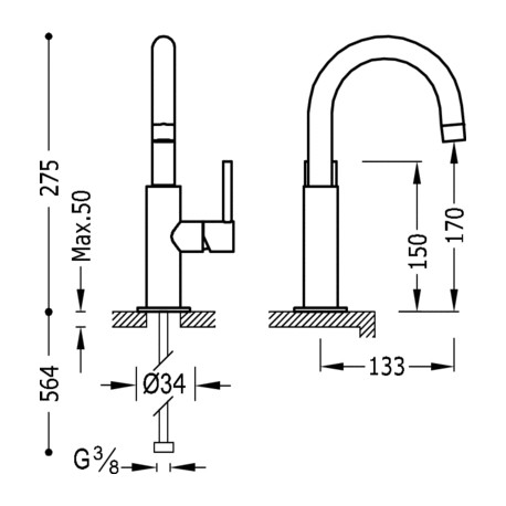 Tres > Armatúra/batérie > Umývadlové batérie stojanové > Study Colors CA, VO, GR > Umyvadlová batéria Tres Study Colors z boczną dźwignią, wys. 27,5 cm - zlatý cava