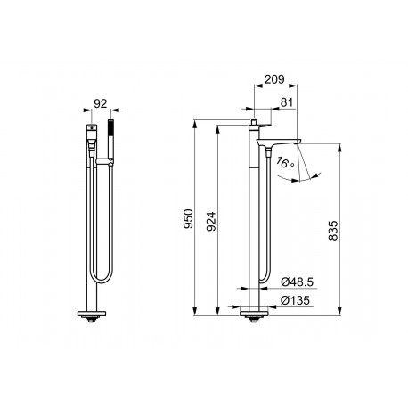 Oras > Armatúra/batérie > Vaňové batérie voľne stojace na podlahu > HansaGenesis > Vaňová Batéria HansaGenesis so sprchovým systemom, páková, voľne stojaca - chróm