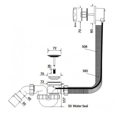 Vedo > Odpadové systémy > Vaňové prepady/odtoky > Osprzęt i syfony > Sifón vaňová Cersanit automatický z prepadom - chróm