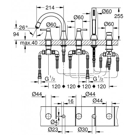Grohe > Armatúra/batérie > Vaňové batérie viacotvorové > Grandera > Vaňová Batéria Grohe Grandera 5-otvorová - chróm