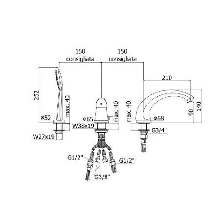 Paffoni > Armatúra/batérie > Vaňové batérie viacotvorové > Duemila > Vaňová Batéria Paffoni Duemila, 3-otvorová - chróm