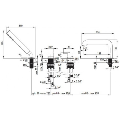 Deante > Armatúra/batérie > Vaňové batérie viacotvorové > Silia > Vaňová Batéria Deante Silia 4-otvorová so sprchovým systemom - hnedá kefovaná