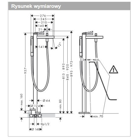 Hansgrohe > Armatúra/batérie > Vaňové batérie voľne stojace na podlahu > Finoris > Batérie voľne stojaca na podlahu Hansgrohe Finoris, páková, 2 výstupy vody, Sprchový set - hnedá kefovaná
