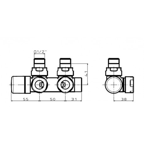 Zehnder > Ventily, Hlavice > Ventily > Twin > Súprava zaworowy Zehnder typ P (pravé), pro připojení środkowego 50 mm, regulacyjny, s možnosťou podłączenia głowicy termostatycznej (M30x1,5 mm) - chróm