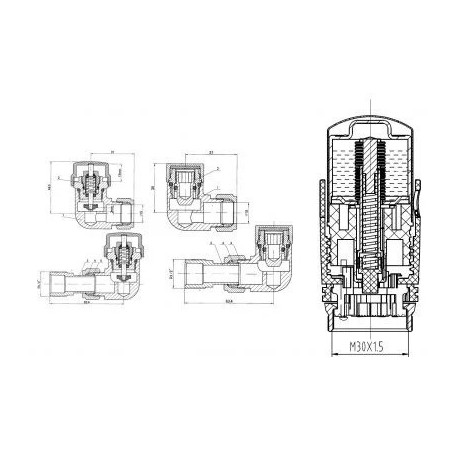 Schlosser > Ventily, Hlavice > Ventily > Zestaw Duoplex Prov > Súprava s termostatom Invena Prov, osiowy, univerzálny - čierna matnéný