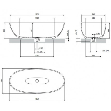 Omnires > Vane > Voľno stojace vane > Wolnostojące > Vaňa voľne stojaca Omnires Shell M+ 175x78cm - farba black lava matnéný