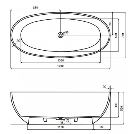 Besco > Vane > Voľno stojace vane > Assos > Vaňa voľne stojaca Besco Mexa 170x78 cm Oválna Carbon Grey, maskownica čierna matt