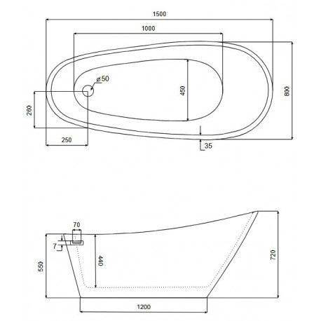 Besco > Vane > Voľno stojace vane > Assos > Vaňa voľne stojaca Besco Melody 150x80 cm Oválna biela, maskownica syfonu z prepadom biela