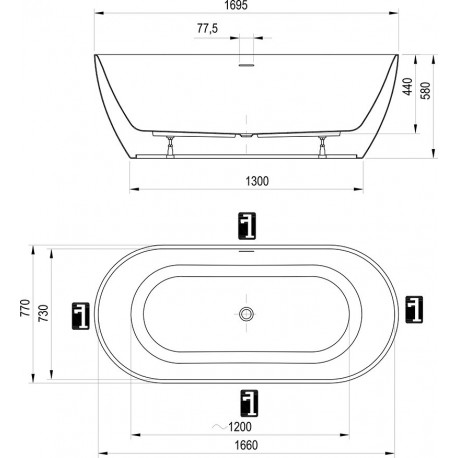 Ravak > Vane > Voľno stojace vane > Ostatné > Vaňa voľne stojaca Ravak Freedom O Tec, akrylová,170x77 cm - biela, osłona odpływu biela