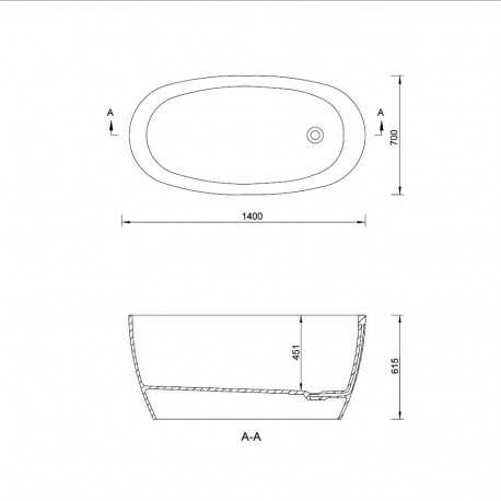 Omnires > Vane > Voľno stojace vane > Wanny wolnostojące > Vaňa voľne stojaca Emporia Alia 140x70x61,5 cm z konglomerátu, bez zintegrowanego przelewu, S povrchom Snow White - biela
