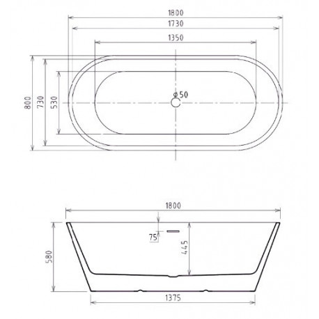 Vaňa voľne stojaca Oválna Besco Deeva 180x80 cm biely lesklá, z prepadom szczelinowym + maskownica odpływu biela