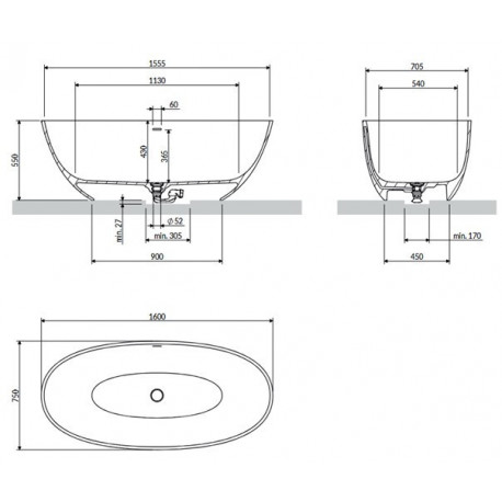 Omnires > Vane > Voľno stojace vane > Wolnostojące > Vaňa voľne stojaca Omnires Shell M+ 160 x 75 cm, z prepadom - biela