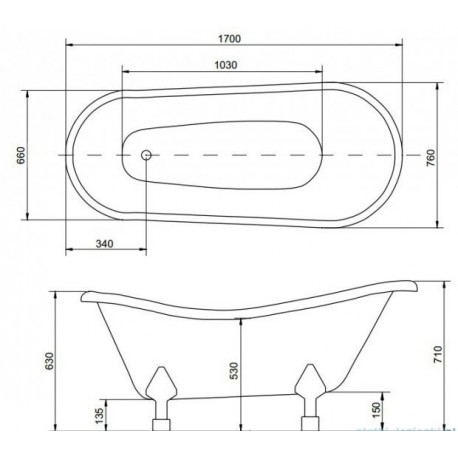 Besco > Vane > Voľno stojace vane > Assos > Vaňa voľne stojaca Oválna Besco Otylia 170x77cm Retro + nohy biele