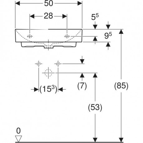 Geberit > Sanitárna keramika > Nábytkové umývadlá > One > Umývadlo malá Geberit One 50x41 cm, s otvorom na batérie, bez prepadu, povlak KeraTect - biela
