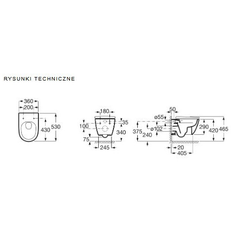 Roca > Sanitárna keramika > Závesné misy > Ona > Misa WC závesné, Roca Ona 36x53 cm, Rimless Vortex - biela