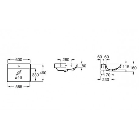 Roca > Sanitárna keramika > Závesné umývadlá > Ona > Malé umývadlo stenová Roca Ona 60x46 cm FIineceramic - biela