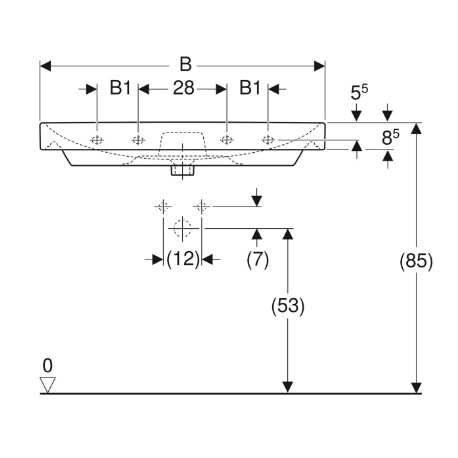 Geberit > Sanitárna keramika > Závesné umývadlá > Smyle Square > Geberit Smyle Square Umývadlo, 60cm, z prepadom, s otvorom pre batériu, S povrchom KeraTect - biela