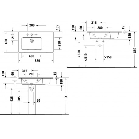 Duravit > Sanitárna keramika > Závesné umývadlá > ME by Starck > Asymetrické umývadlo Duravit ME by Starck 83x49 cm, 1 otvor na batériu z ľavej stronie, S povrchom z WonderGliss - biela